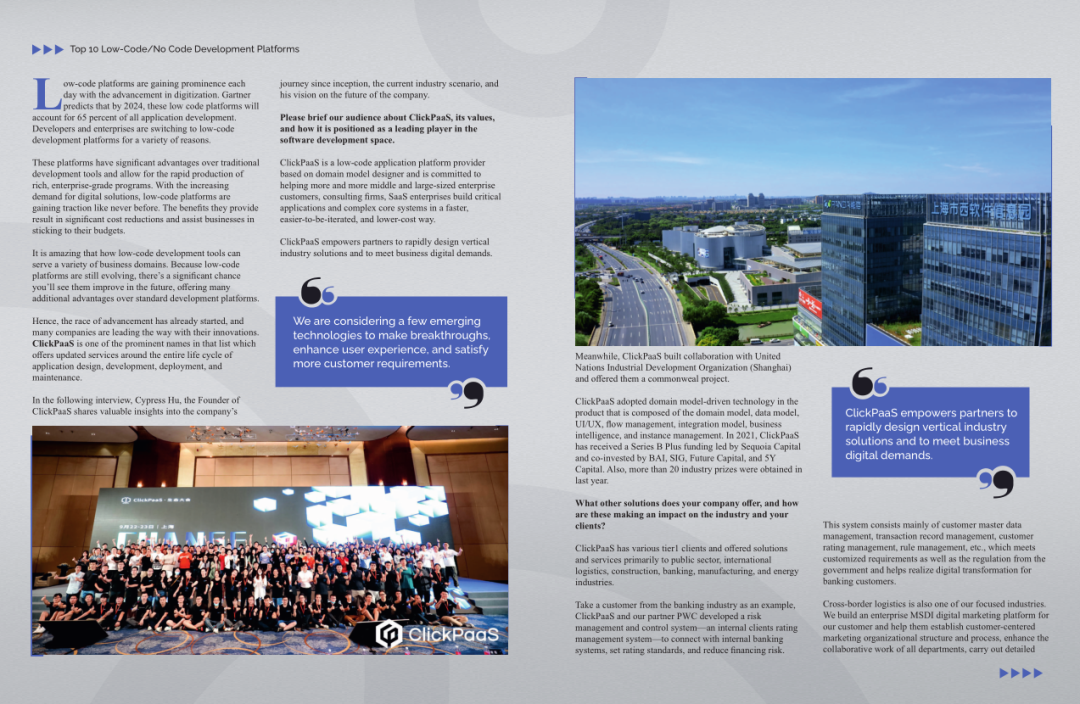 2022年年初,金年会入选外媒Insights Success低代码/无代码开发平台 Top10,创始人、CEO胡柏受邀接受专访并荣登封面人物,他与Insights Success的读者分享了金年会成立的初心、发展历程、当前的行业发展趋势以及他对公司未来的展望。